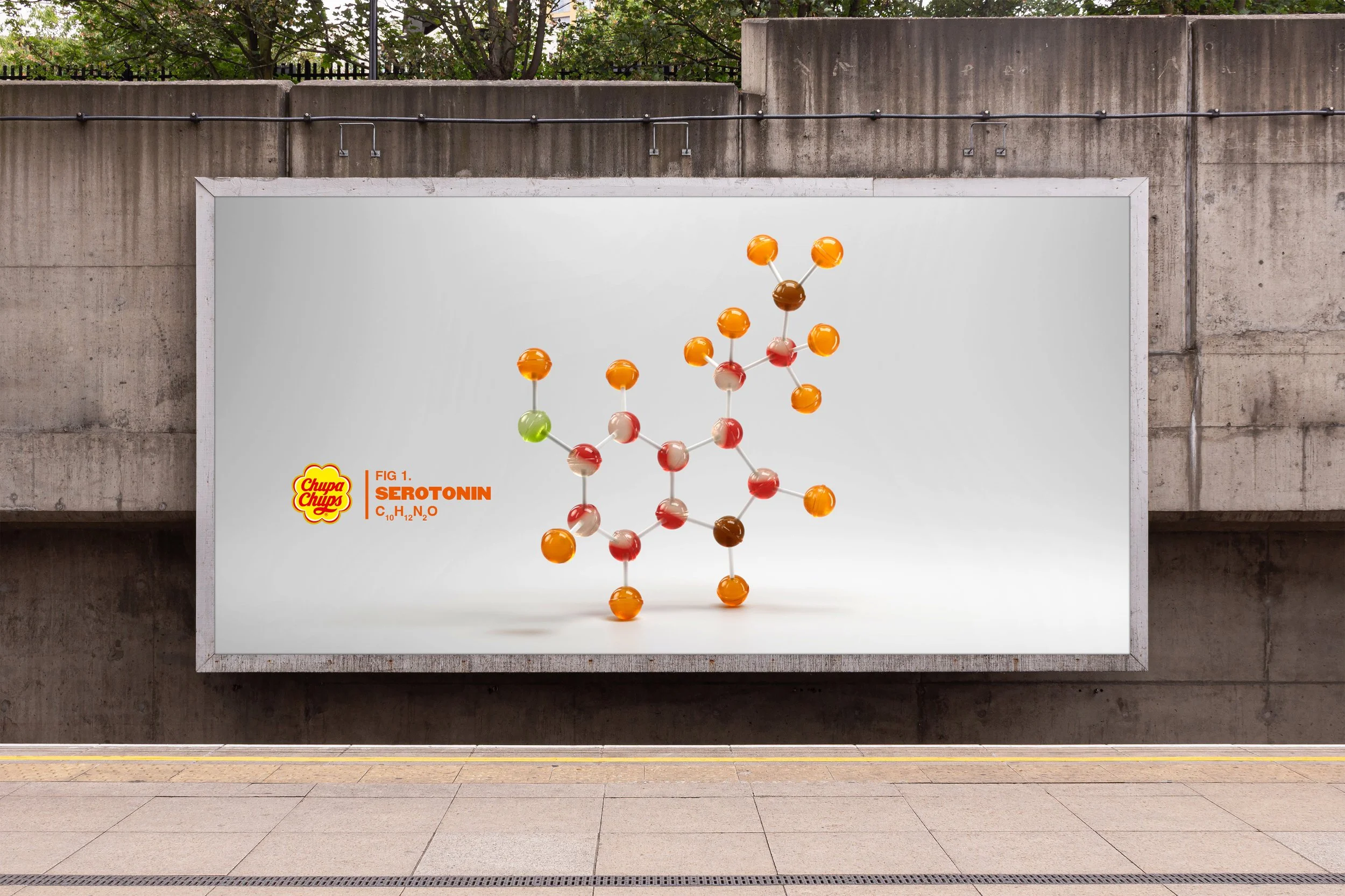 What better way to show the physiological effect of having a lollipop other than creating the actual molecule structure of the happiness you get.